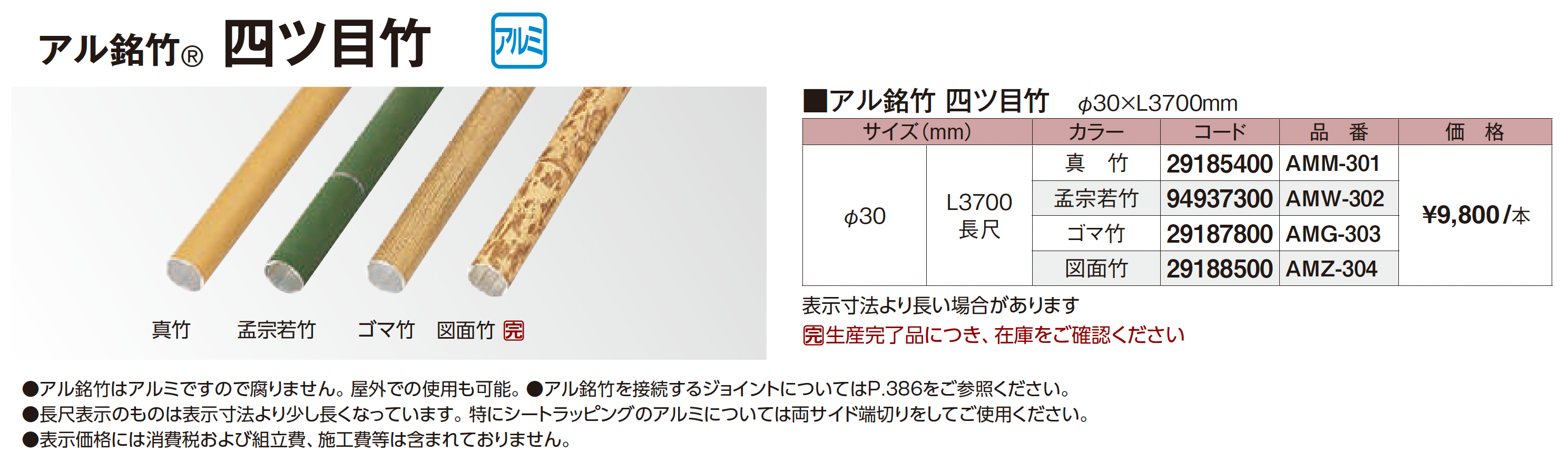 | カラー | 真竹 孟宗若竹 ゴマ竹 図面竹(生産完了品) |