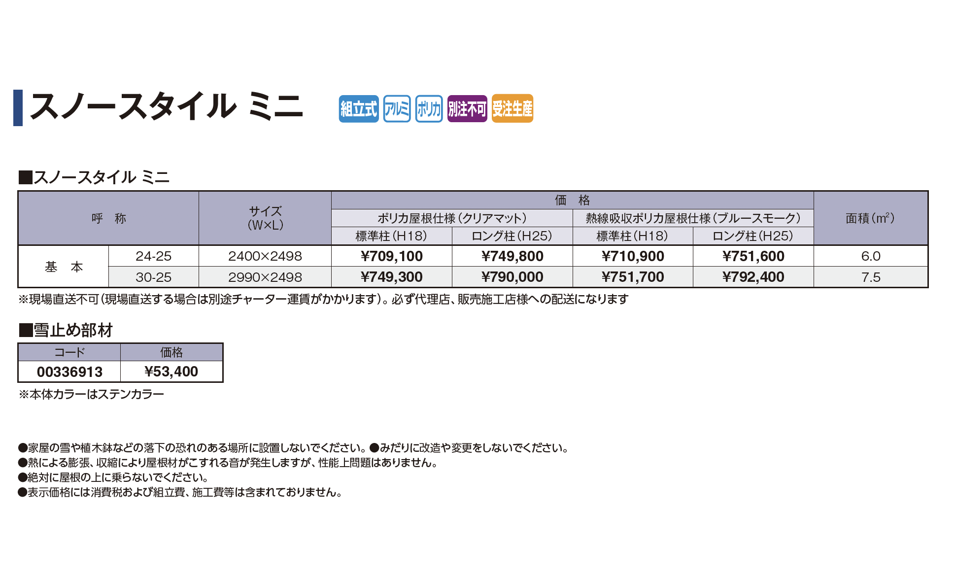 | 新旧品 | スノースタイルミニ(プロガーデンエクステリア総合カタログPROEX2025)スノースタイルミニ【2024年版】(プロガーデンエクステリア総合カタログ PROEX2024) |