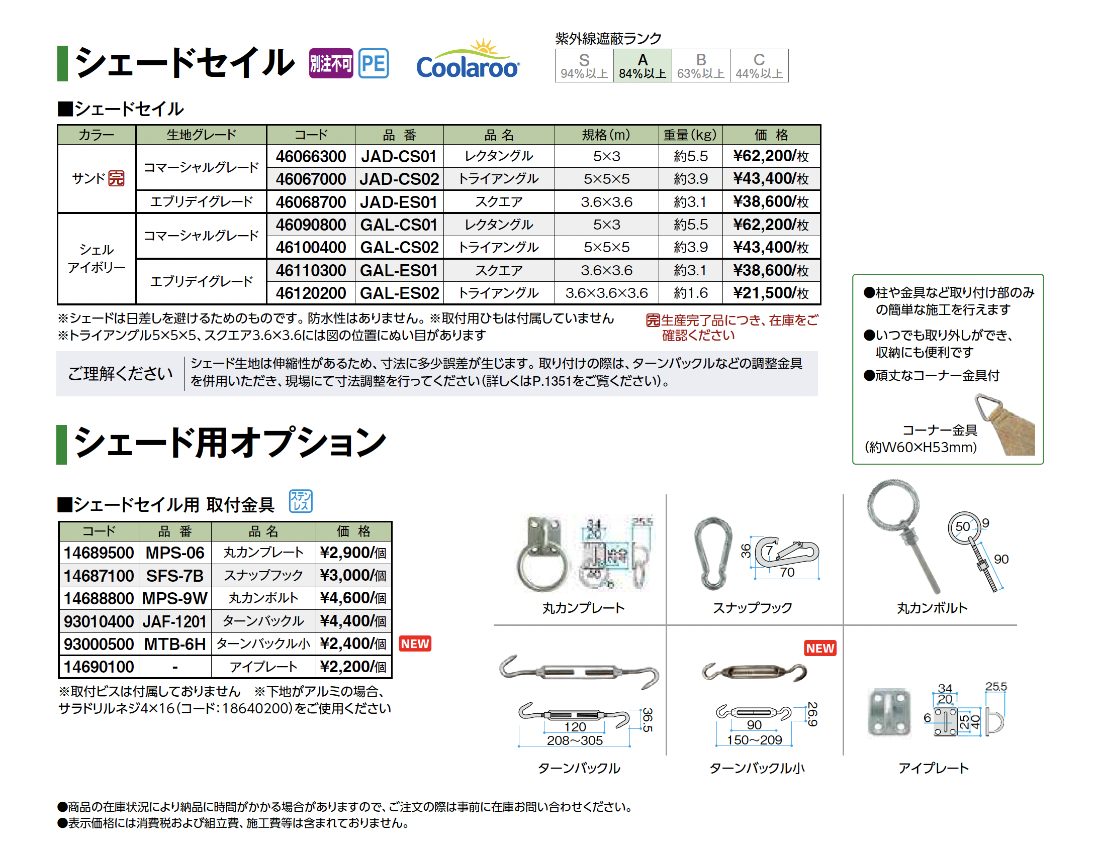 | 新旧品 | シェードセイル(プロガーデンエクステリア総合カタログPROEX2025)シェードセイル【2024年版】(プロガーデンエクステリア総合カタログ PROEX2024) |