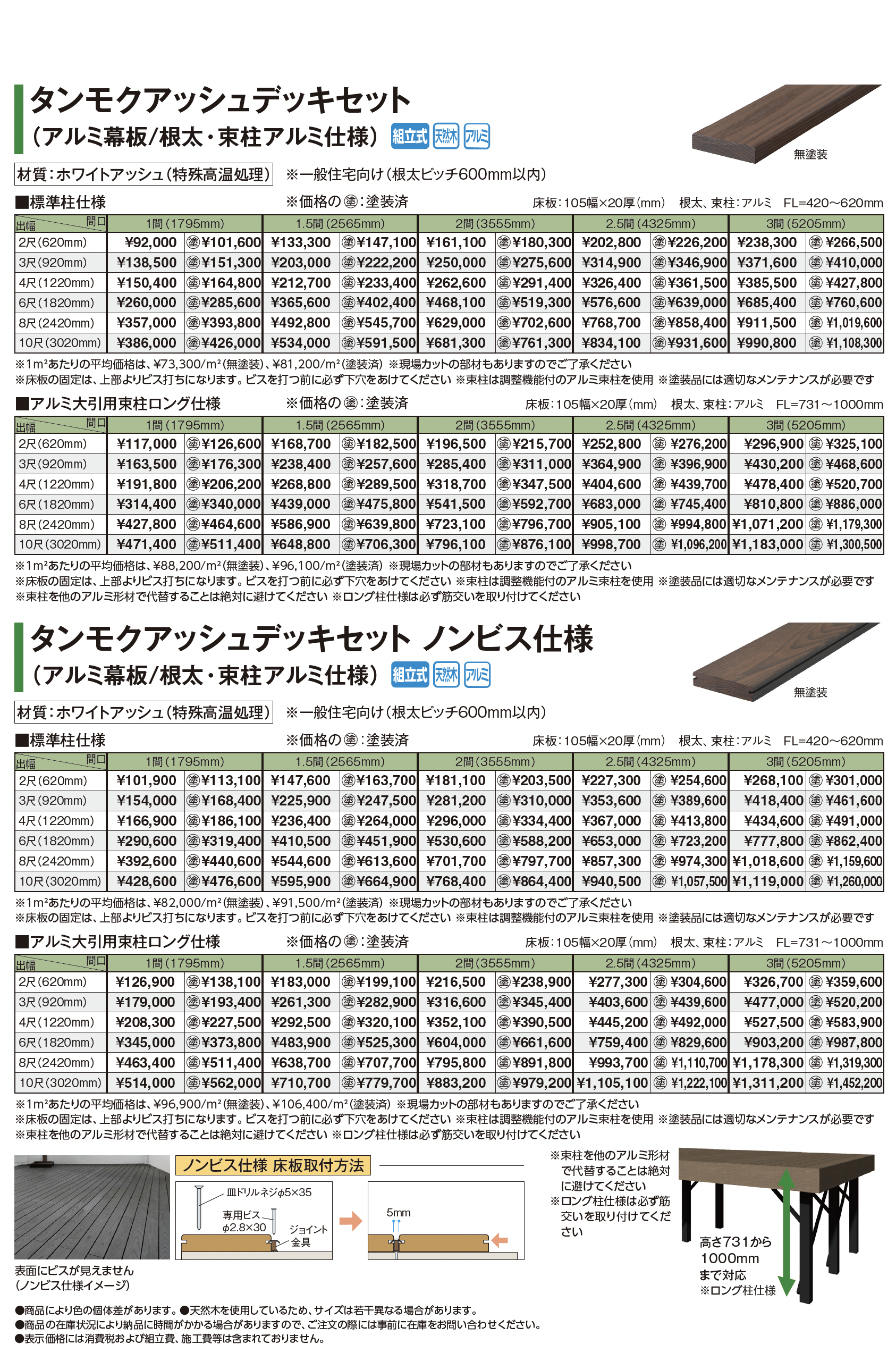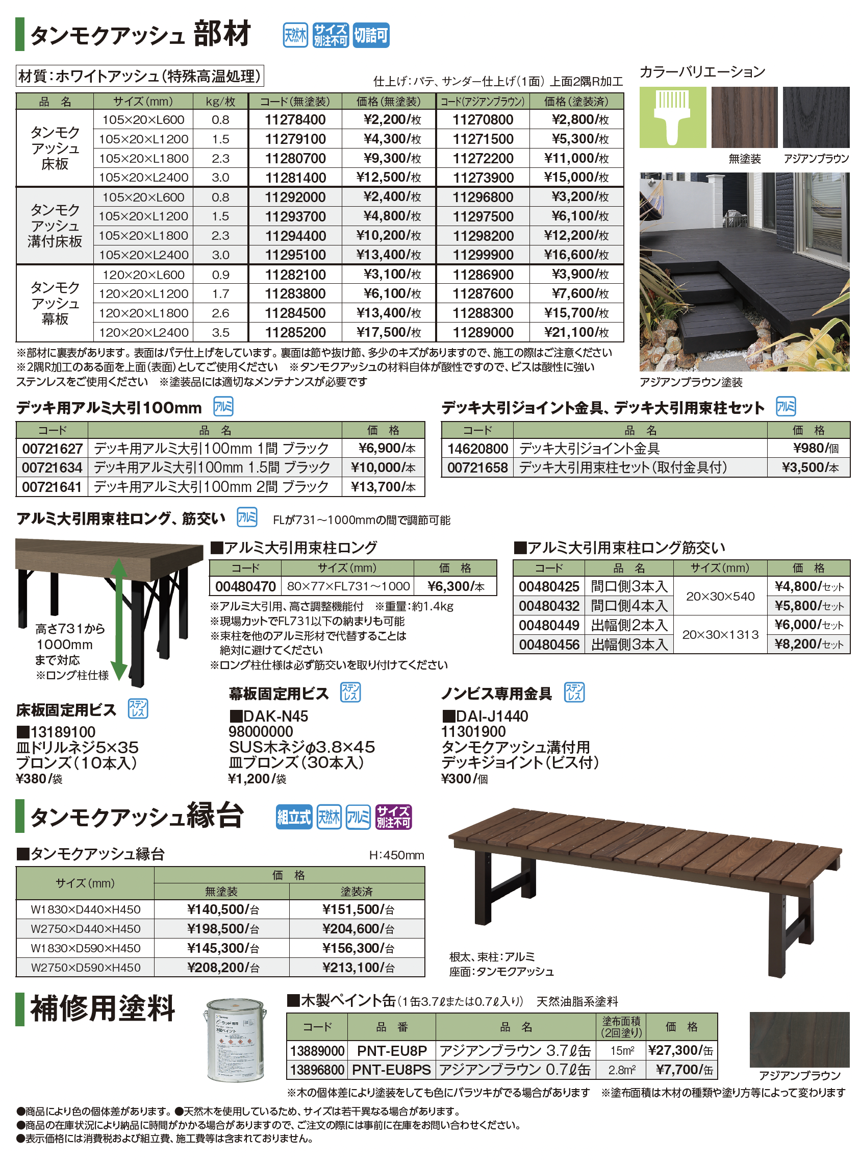 | 新旧品 | タンモクアッシュ デッキセット(プロガーデンエクステリア総合カタログPROEX2025)タンモクアッシュ デッキセット【2024年版】(プロガーデンエクステリア総合カタログ PROEX2024) |