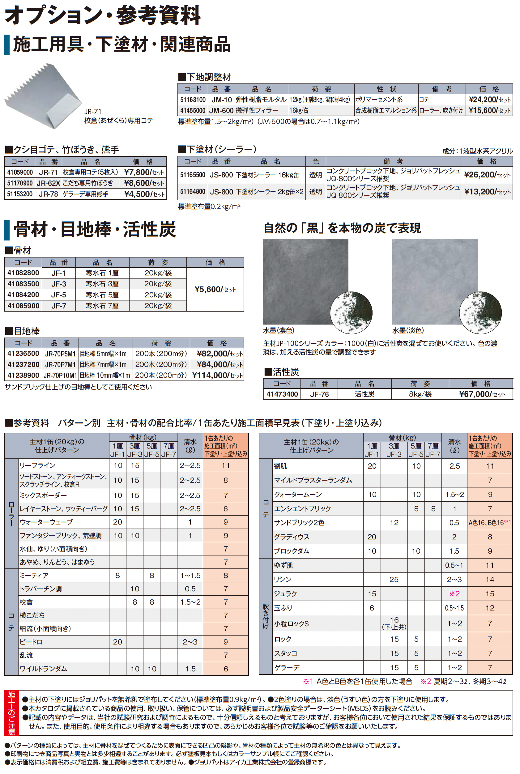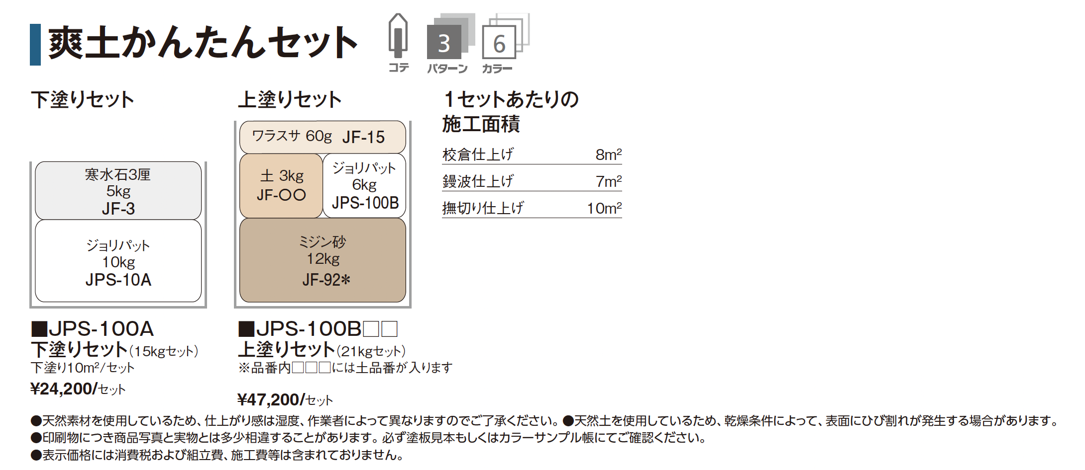 | カラー | 淡路土 淡路浅黄土 美濃木節粘土 京聚楽土 美濃白土 白雲母 |