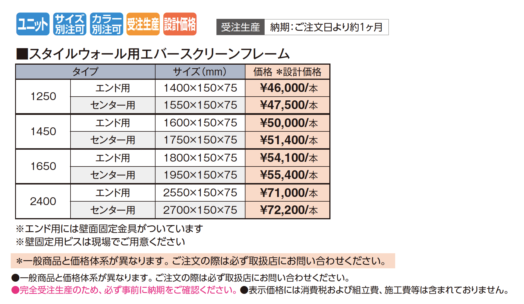 | 新旧品 | スタイルウォール用 エバースクリーンフレーム(プロガーデンエクステリア総合カタログPROEX2025)スタイルウォール用 エバースクリーンフレーム【2024年版】(プロガーデンエクステリア総合カタログ PROEX2024) |