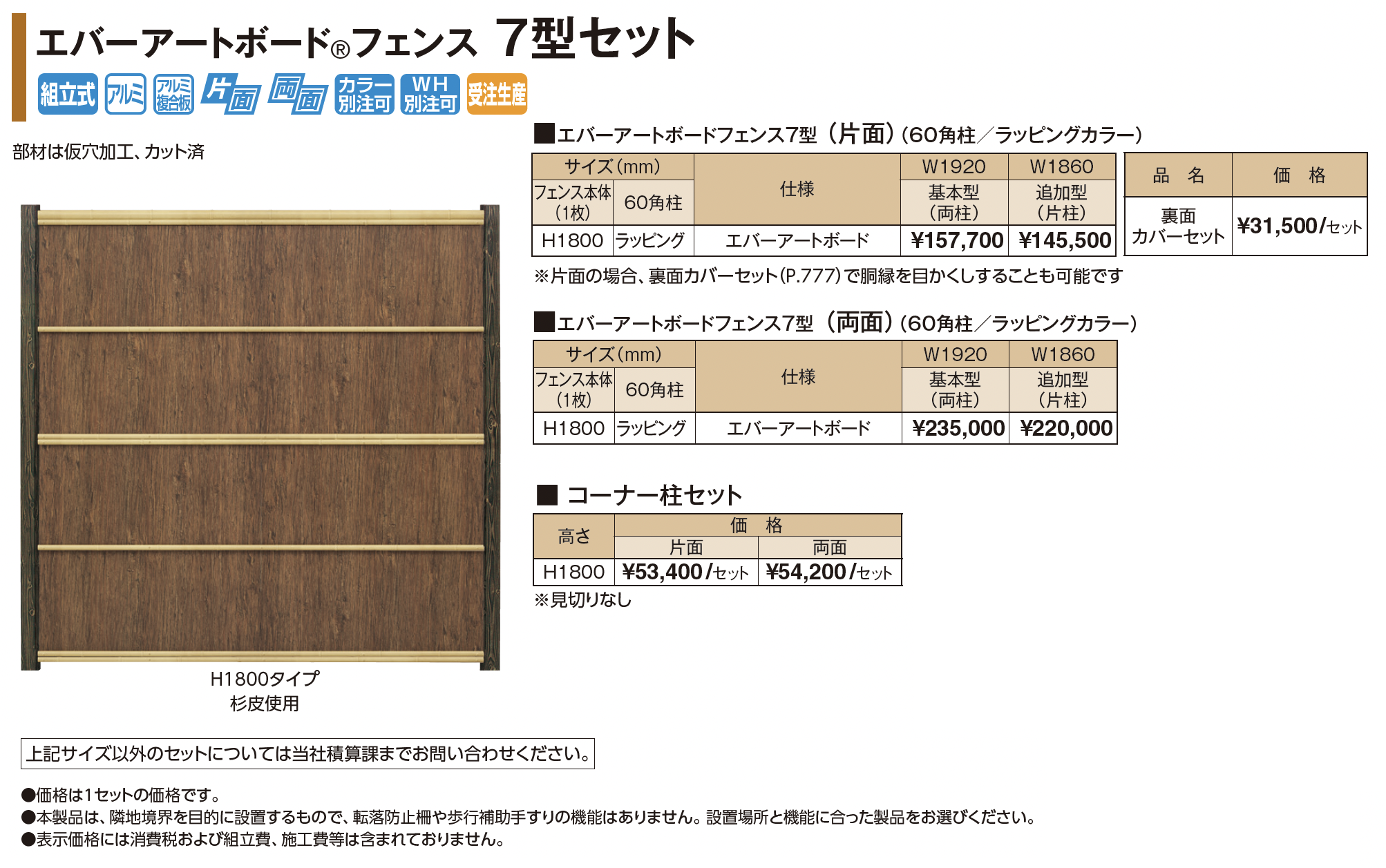 | 新旧品 | エバーアートボード®フェンス7型セット(プロガーデンエクステリア総合カタログPROEX2025)エバーアートボード®フェンス7型セット【2024年版】(プロガーデンエクステリア総合カタログ PROEX2024) |