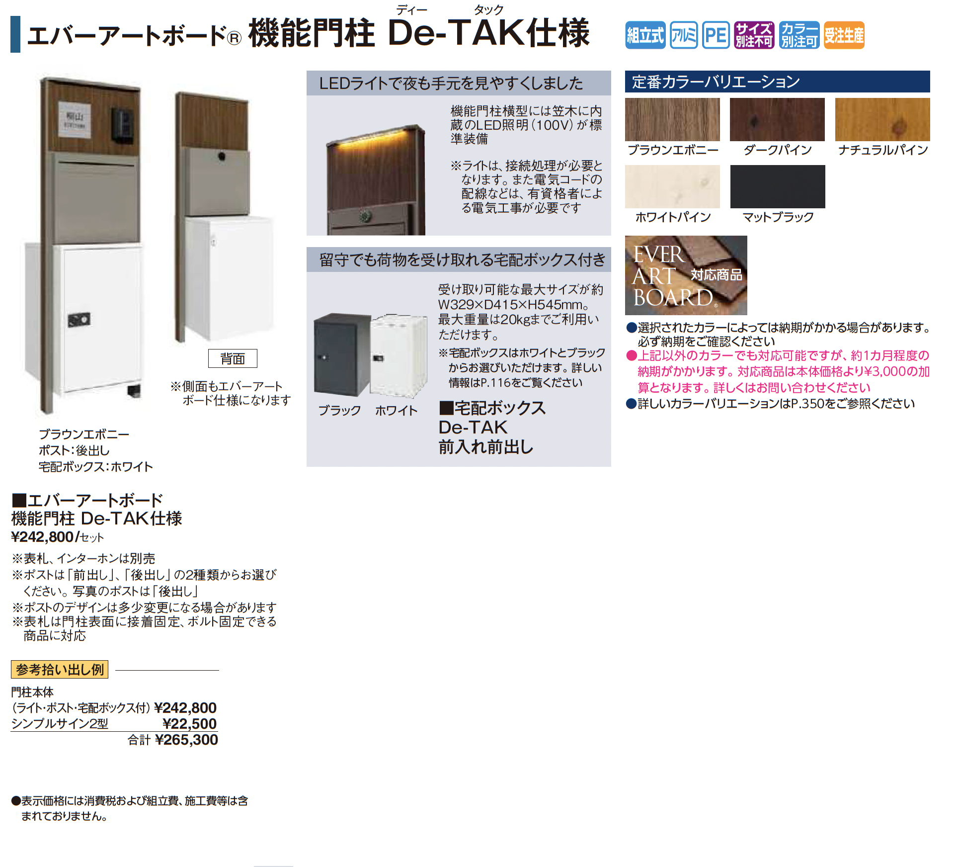 | 新旧品 | 宅配ボックス付門柱 エバーアートボード®︎ 機能門柱 De-TAK仕様(プロガーデンエクステリア総合カタログPROEX2025)宅配ボックス付門柱 エバーアートボード®︎ 機能門柱 De-TAK仕様【2024年版】(プロガーデンエクステリア総合カタログ PROEX2024) |
