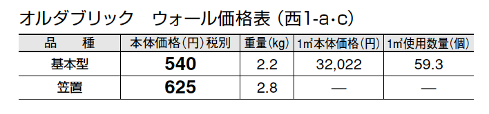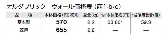 寒冷地では凍害の恐れがありますのでご注意ください。 ●レンガを酸性洗剤でメンテナンスすると変色・退色等が発生するおそれがあります。 ●レンガは環境により錆や黒シミが発生する場合があります。 ●施工の際、空洞部は必ずモルタルを全充填してください。特に笠置は目地部分だけでなく内部全体にモルタルを充填してください。充填が不十分な場合、凍害や脱落・倒壊の危険性があります。 ●塗り壁にレンガを笠置などとして使用する場合、施工後目地モルタルからのアク等により、塗り壁表面にスジ状の汚れが発生する場合がありますので、塗り壁、レンガ、目地モルタルは必ず撥水処理を行って防止してください。 ●レンガ表面の細かいヒビ割れは焼き物特有のものであり、品質には問題ありません。 ●レンガ製品は焼きムラがあるものと無いものが混ざり、また色にもばらつきがあります。 ●オルダブリック ウォールは焼成の性質上、寸法にバラツキがあります。JIS R 1250(普通レンガ寸法許容差、長さ±5.0㎜、幅±3.0㎜、厚さ±2.5㎜)に準じません。施工において目地で調節が必要になります。 ●汚れ防止のため、浸透性吸水防止剤「アクアシール」(P584)のご使用を推奨します。 ●寒冷地では凍害の恐れがあります。