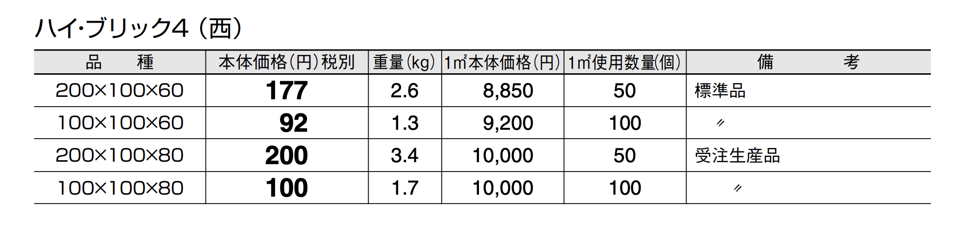 ●目地キープ付きのため、つき合わせ施工となります。 ●80Hは、1色20㎡以上からの受注生産品となります。 ●受注生産品は、受注数・納期に制限がございますのでお問い合わせください。 ●コンクリート床盤の上部にペイブを敷設する場合の留意点は、技術資料P548を参照してください。 ●芝生目土・腐葉土には鉄分(Fe2O3)を多く含むものもあり、雨水等で製品表面に流出した場合、極稀に色彩の薄い製品に関して、薄茶色のシミを発生することがあります。施工後に防水剤塗布をおすすめします。