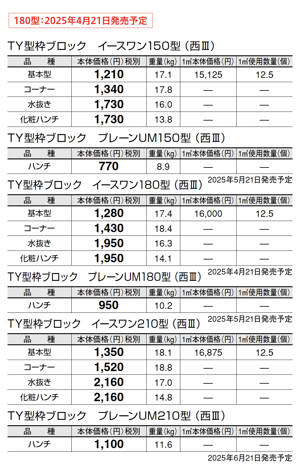 | 新旧品 | TY型枠ブロック イース ワン【九州地方】【2024年版】(エクステリア総合カタログ2024) |