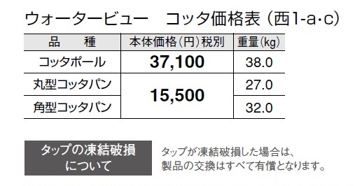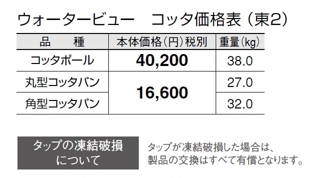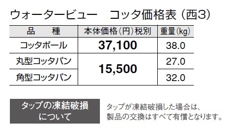 ●ウォータービューシリーズは寒冷地用製品ではありません。配管内の水の凍結が考えられる場合は、配管内の水を抜く、ヒーター等で保温する、蛇口から少量の水を出し続けるなど、施工した地域・気候に応じた凍結防止対策を行ってください。