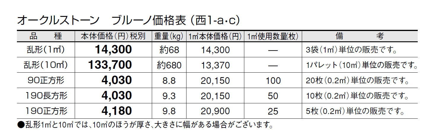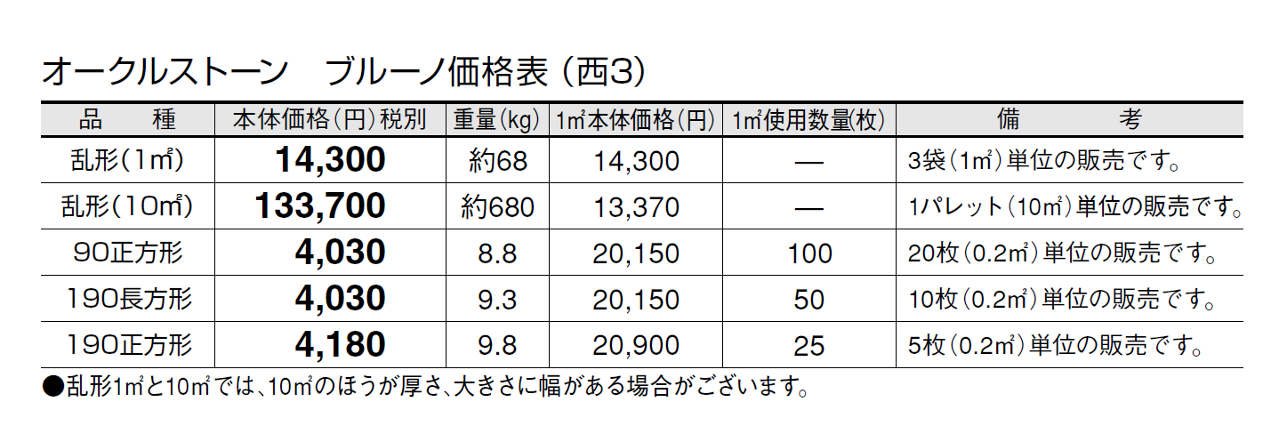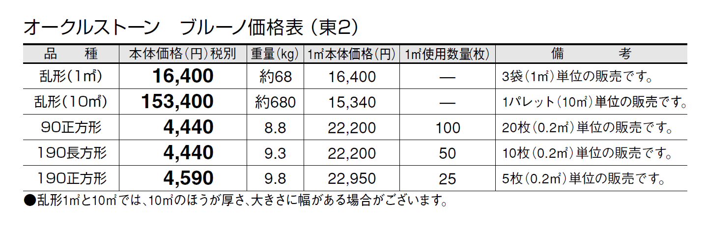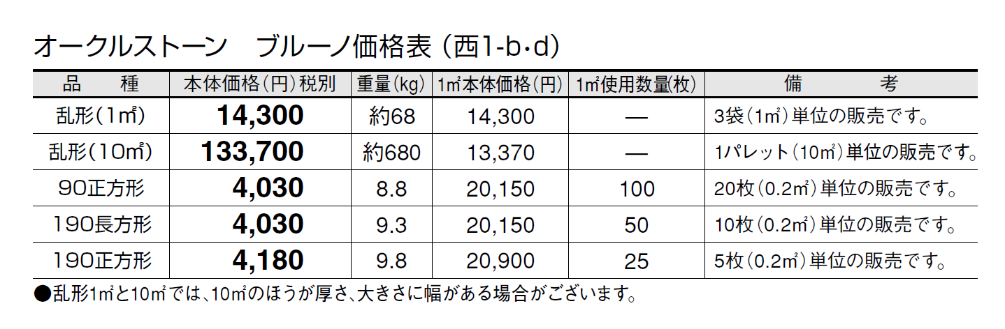 ●乱形は、施工にロスがありますので、施工面積の2割前後余分の数量が必要です。