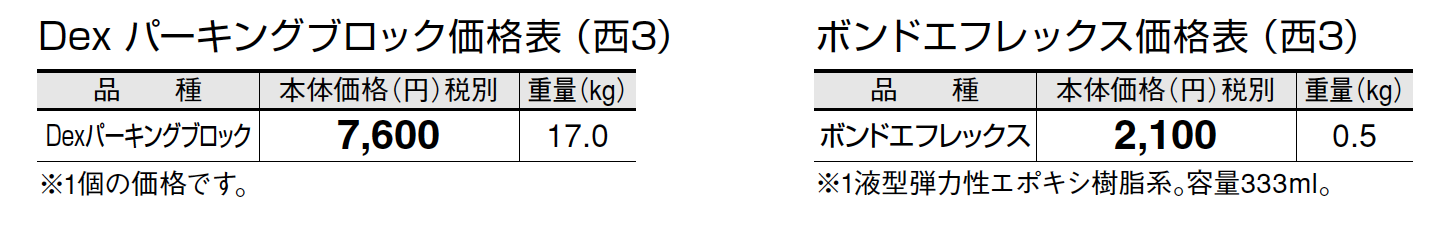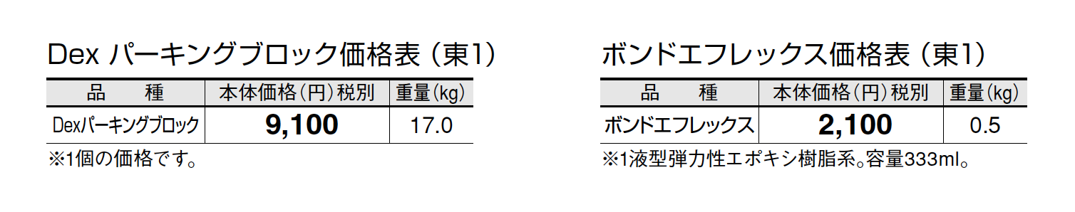 ●ボンドエフレックスは1本でパーキングブロック3~4個の接着が可能です。