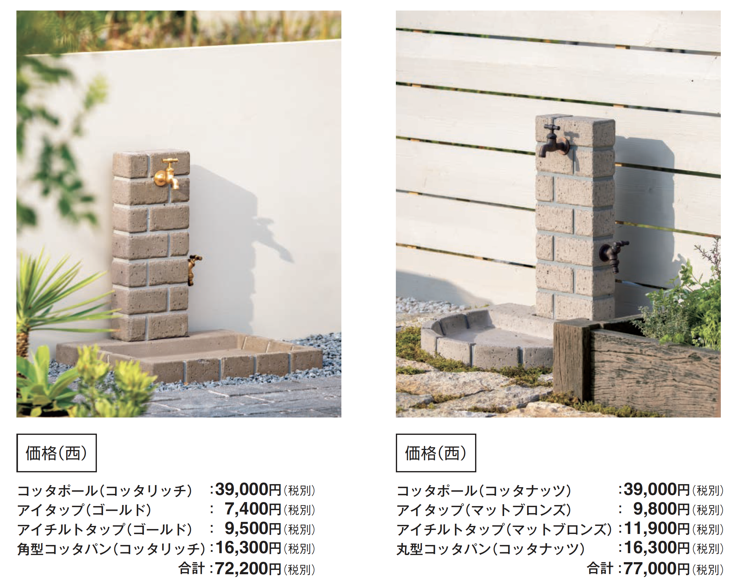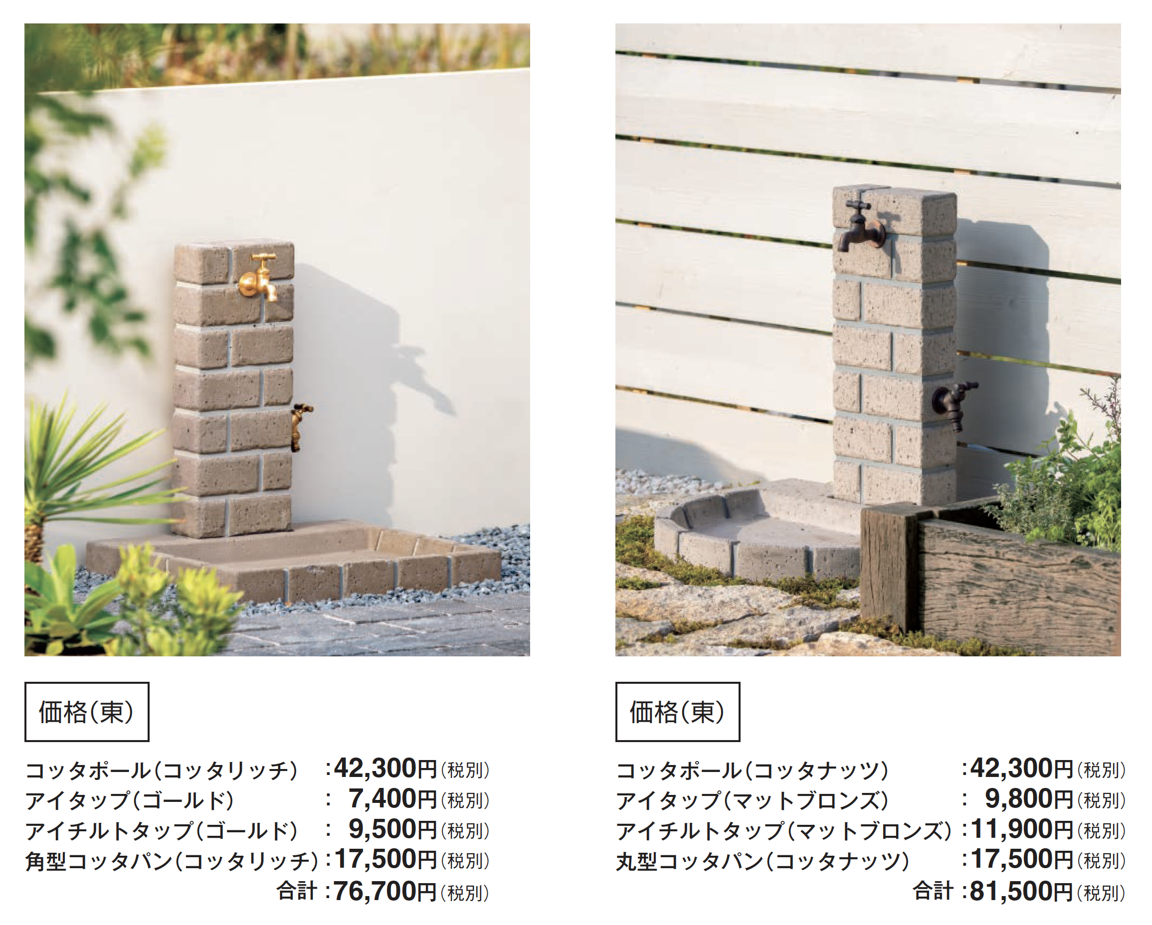 タップの凍結破損について タップが凍結破損した場合は、製品の交換はすべて有償となります。 ●衝撃や擦れなどにより欠けたり剥がれたりする恐れがあります。取り扱いには十分にお気をつけください。 ●水道工事は水道工事店にご依頼ください。 ●ウォータービューシリーズは寒冷地用製品ではありません。配管内の水の凍結が考えられる場合は、配管内の水を抜く、ヒーター等で保温する、蛇口から少量の水を出し続けるなど、施工した地域・気候に応じた凍結防止対策を行ってください。 ●凍結の恐れのある地域では、別途、水抜栓を設置してください。 ●パン内に水がたまることがあります。 ●ポールとパンは、同じ色名でも、製造方法等が異なるため、大きな色差が生じることがあります。