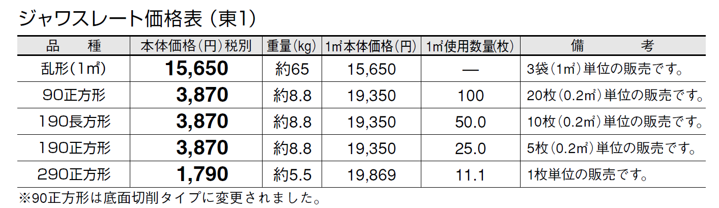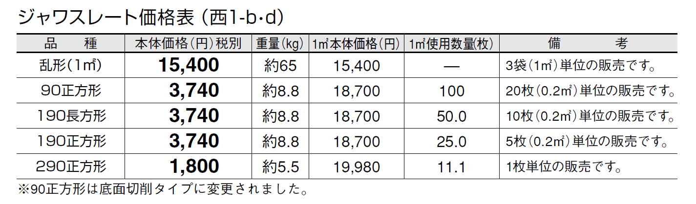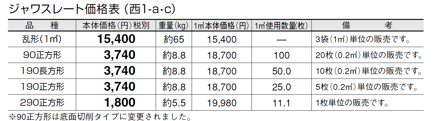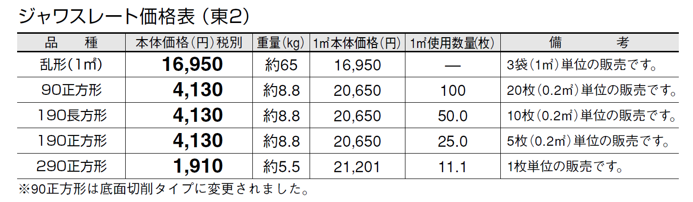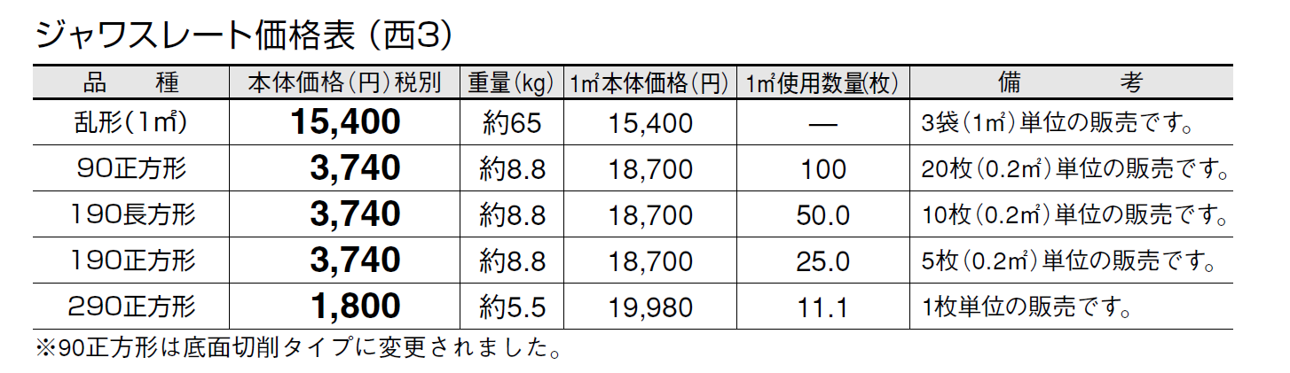 ●乱形は、施工にロスがありますので、施工面積の2割前後余分の数量が必要です。