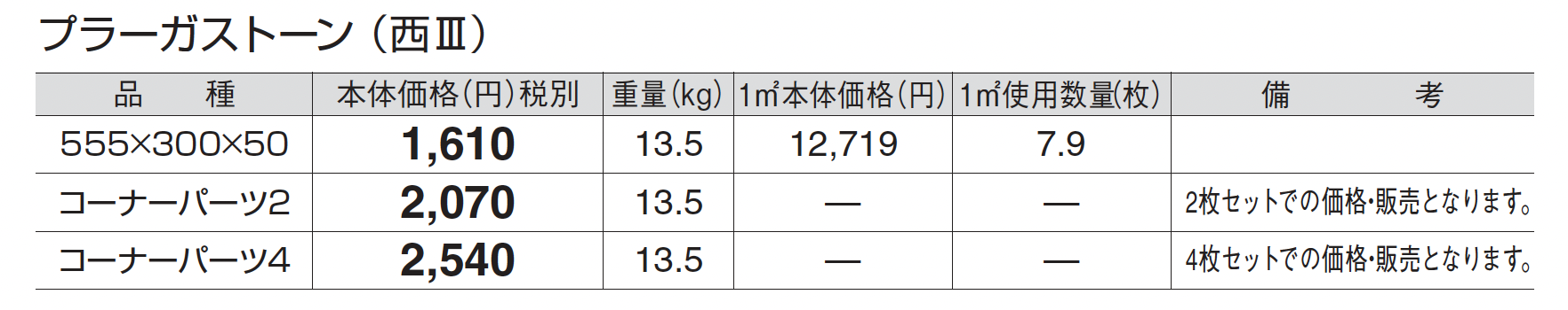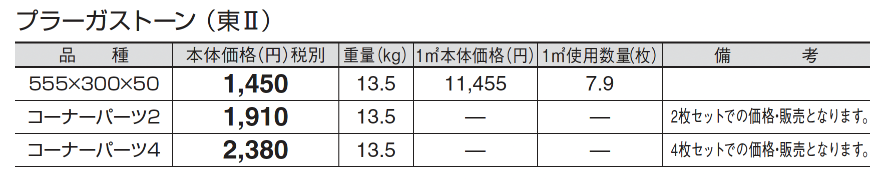 ●TOYOジョイサンド・ハードの施工方法、注意事項はP560をご参照ください。 ●使用量の目安は1袋/20kg当たりで5㎡の敷設となります。 ●自然な風合いを出すため表面の色合い、テクスチャーに幅をもたせてあります。 ●表面意匠は3パターンあります。(柄の指定はできません。) ●突き合わせて施工しますが、製品特性上あえて目地幅がランダムになるようにしています。 ●面取りが無い商品のため、面取りのある製品と比べて角 に接触すると欠けやすくなっておりますのでお取扱いにご 注意ください。 ●軒下や湿気を伴う場所にはウレタン樹脂で固める固定目地材での施工を行ってください。施工方法及び注意事項はP560をご参照ください。