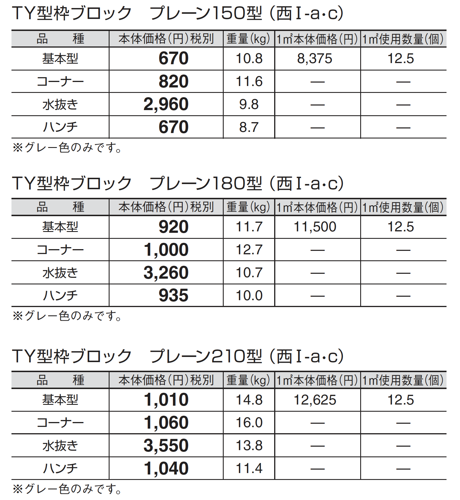 TY型枠ブロック プレーン【東中国・四国】(エクステリア総合カタログ2025)
