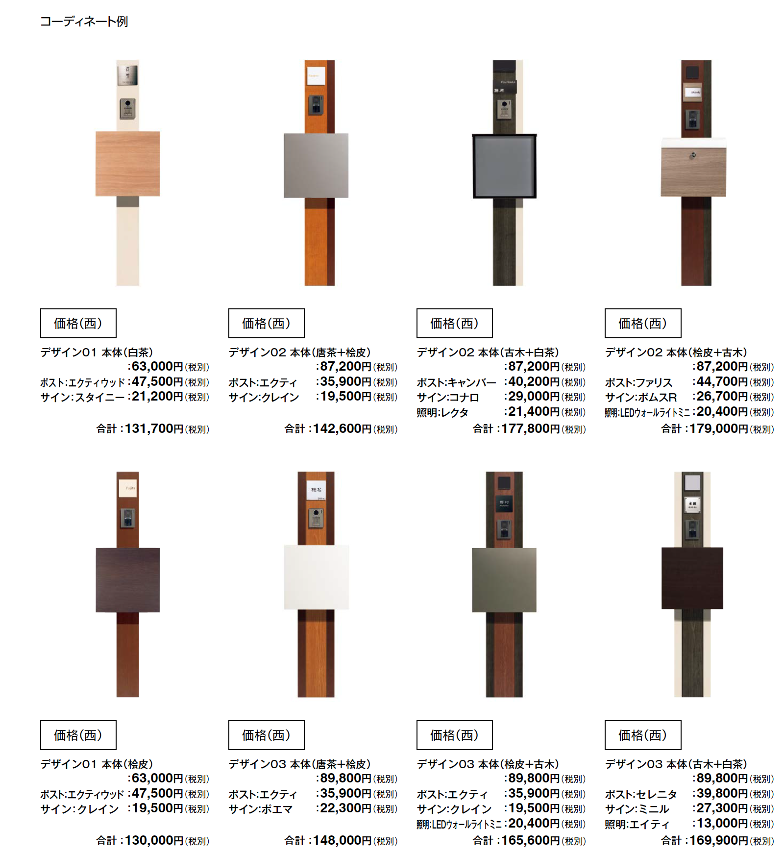 ●フレブウッドポールには、ポスト用の取付ベースと取付けネジ一式が付属されております。 ●照明器具、インターホン、ポスト(取付ベース)は規格寸法図でぬりつぶされた箇所の中心に合わせて取付けてください。 ●照明器具やインターホンを取付ける際は、取付ける物の穴径に適したドリルビスを準備いただき、必ずアルミ芯材箇所にぬいつけてください。 ●ご注文後のキャンセルはお受けできません。