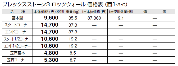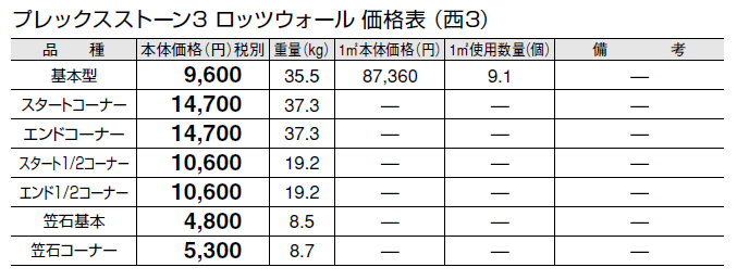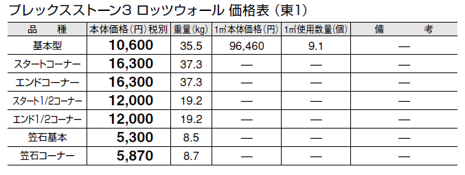 ●突起している石材箇所には寸法誤差があります。ブロック間の接合箇所には約2㎜程度の間隔をあけて配置してください。 ●石材箇所のみを持っての作業は控えてください。しっかりとコンクリートブロック箇所を持って作業を行ってください。 ●天然石のため、色幅があります。 ●衝撃による欠けやはがれにご注意ください。 ●輸入品のため欠品になる場合がありますので、納期をご確認ください。 ●天然石の特性上、サビが発生する場合があります。 ●寒冷地でのご使用は凍害により、割れ及びヒビ、はがれが発生する場合がありますので、ご注意ください。