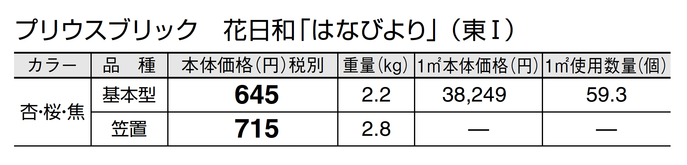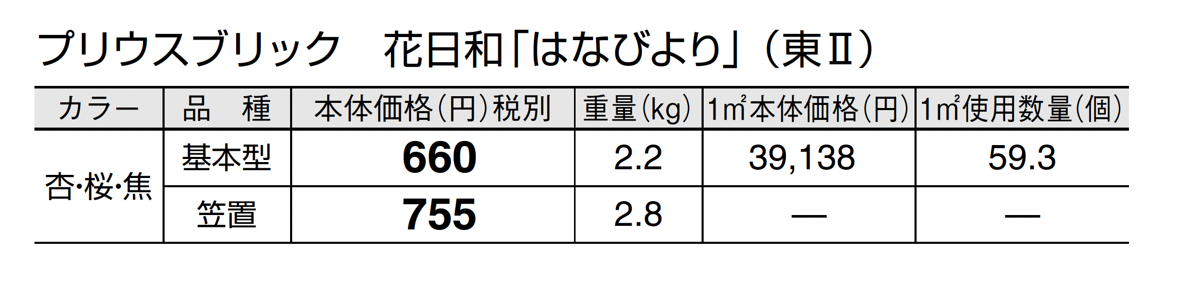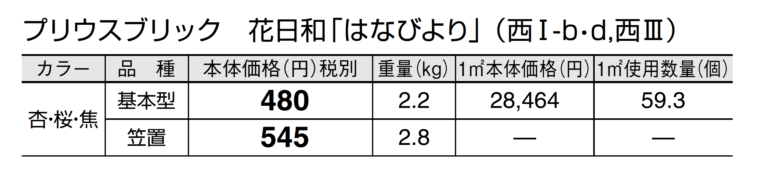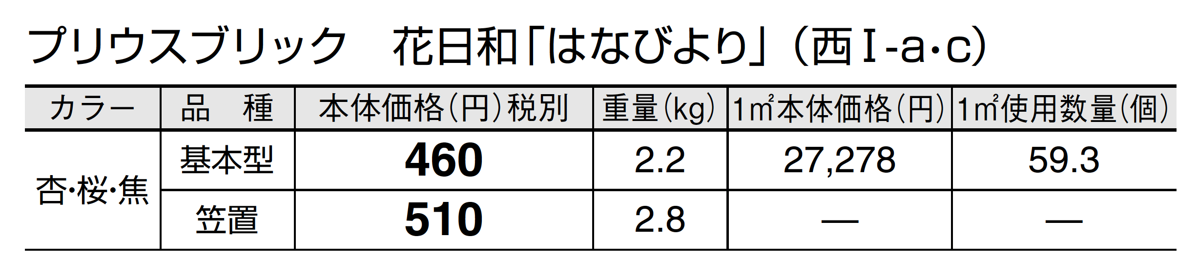 | カラー | 杏(あんず) 桜(さくら) 焦(こがれ) |