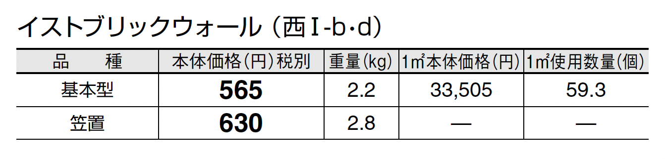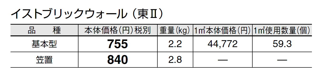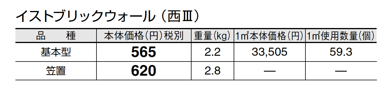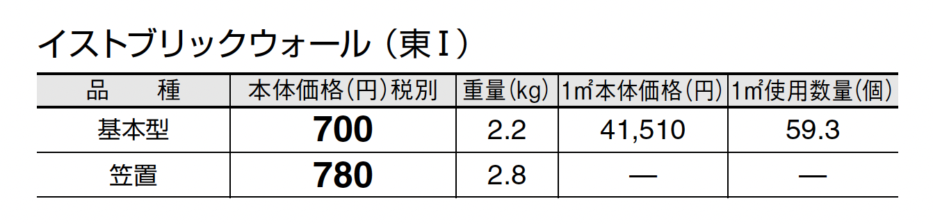 寒冷地では凍害の恐れがありますのでご注意ください。 ●レンガを酸性洗剤でメンテナンスすると変色・退色等が発生するおそれがあります。 ●レンガは環境により錆や黒シミが発生する場合があります。 ●施工の際、空洞部は必ずモルタルを全充填してください。特に笠置は目地部分だけでなく内部全体にモルタルを充填してください。充填が不十分な場合、凍害や脱落・倒壊の危険性があります。 ●塗り壁にレンガを笠置などとして使用する場合、施工後目地モルタルからのアク等により、塗り壁表面にスジ状の汚れが発生する場合がありますので、塗り壁、レンガ、目地モルタルは必ず撥水処理を行って防止してください。 ●レンガ表面の細かいヒビ割れは焼き物特有のものであり、品質には問題ありません。 ●レンガ製品は焼きムラがあるものと無いものが混ざり、また色にもばらつきがあります。 ●イストブリックは製品の特性上、寸法に大きなバラツキがあります。JIS R 1250(普通レンガ寸法許容差、長さ±5.0㎜、幅±3.0㎜、厚さ±2.5㎜)に準じません。施工において目地で調節が必要になります。 ●汚れ防止のため、浸透性吸水防止剤「アクアシール」(P592)のご使用を推奨します。 ●寒冷地では凍害の恐れがあります。