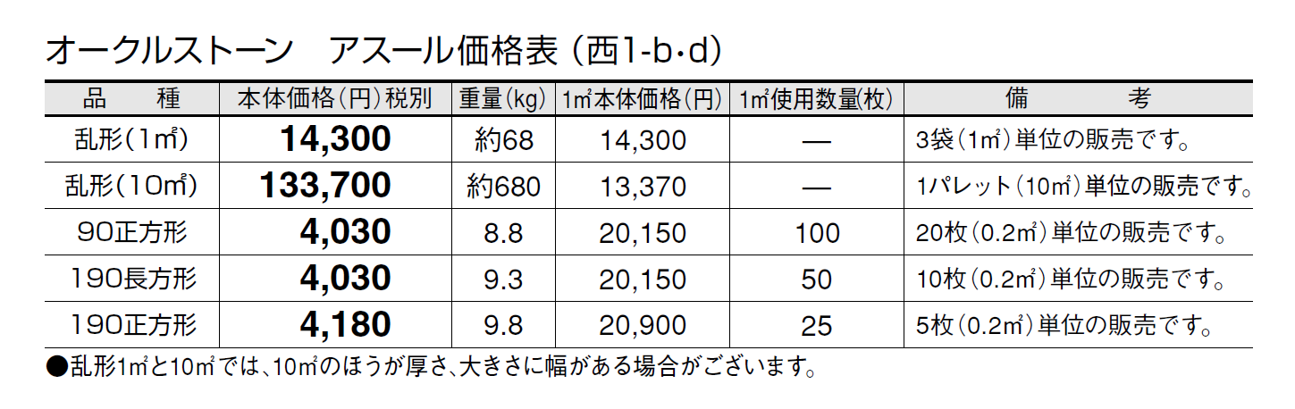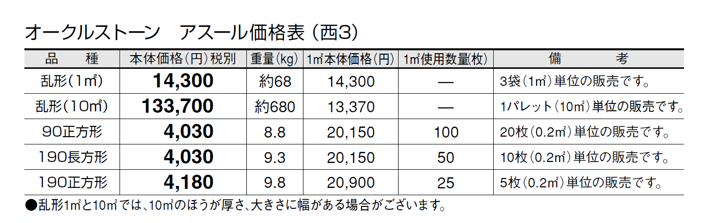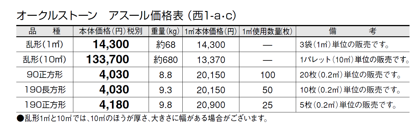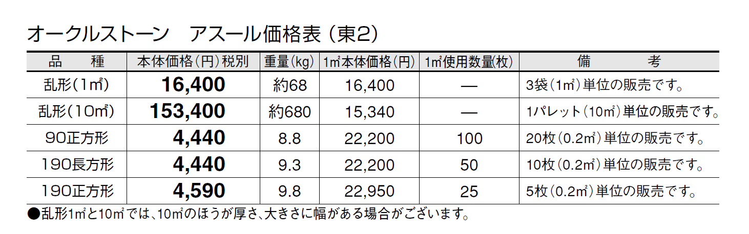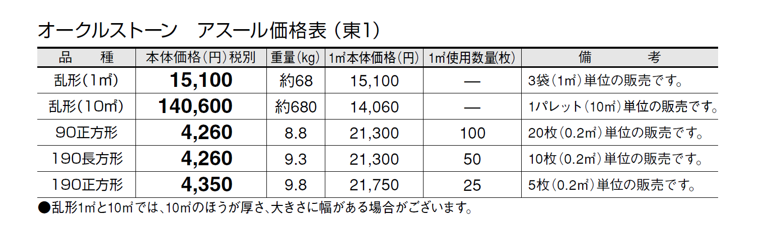 ●乱形は、施工にロスがありますので、施工面積の2割前後余分の数量が必要です。