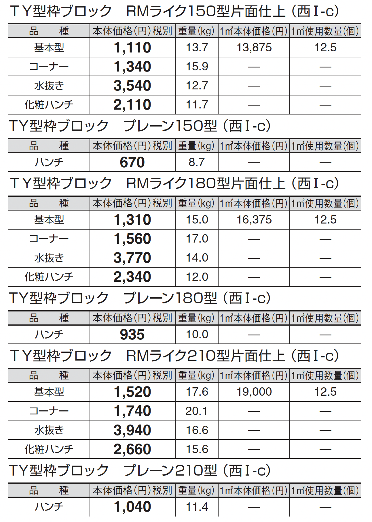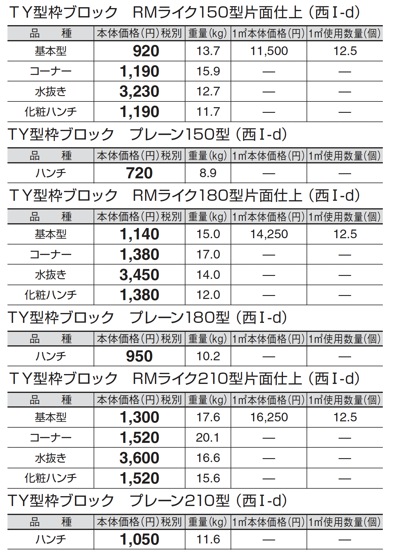 TY型枠ブロック RMライク【エリア限定販売】【2024年版】(エクステリア総合カタログ2024)