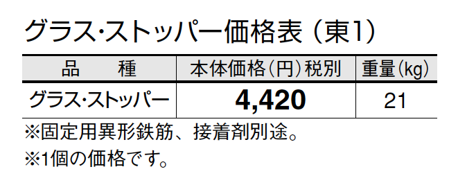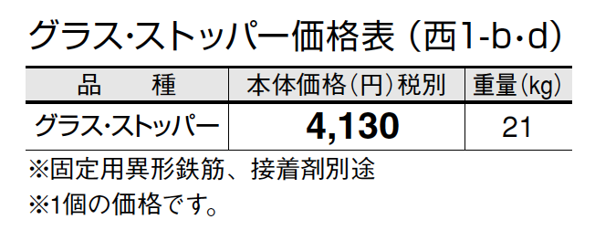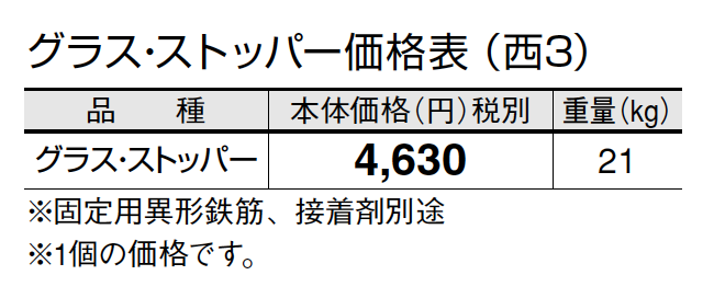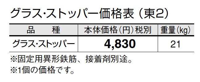 ●グラス・ストッパーは、打ち放しコンクリートで無仕上げ製品のため、製品表面に気泡、色ムラ等が現れることがございます。また、製品ごとに色差が生じます。 ●大型車輌には対応しておりません(普通乗用車程度まで)。 ●ウラ面を、1液型弾力性エポキシ樹脂系接着剤で固定してください。