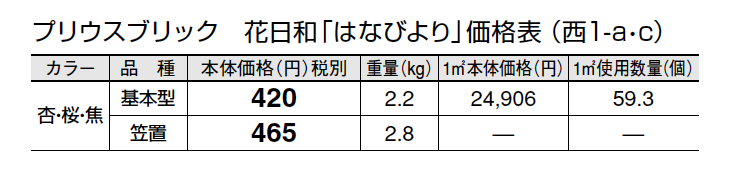 | カラー | 杏(あんず) 桜(さくら) 焦(こがれ) |