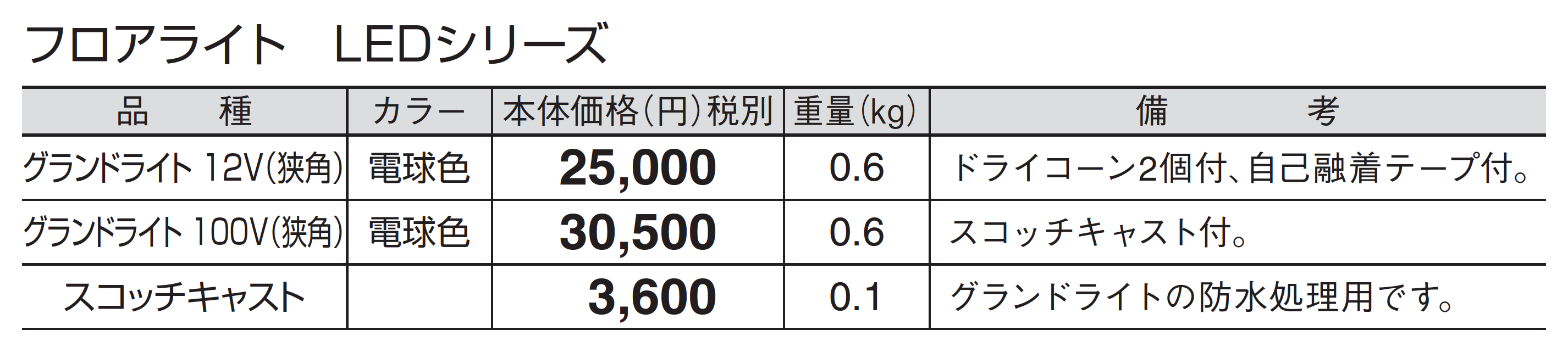 ●LED商品について、当社カタログ掲載商品を使って施工してください。それ以外での使用による不具合は責任を負いかねます。 ●LED商品関連については、保証期間を購入日または施工日より1年とさせていただきます。 ●12V専用品は、AC100V電源には、絶対に接続しないでください。器具が破損し、火災の原因となります。 ●必ず別売りの12Vタイマートランスを使用し、取扱説明書どおりに接続してください。 ●一度AC100V電源に接続した器具は、内部が破損していますので、そのまま使用せず、新しいものをご購入いただき交換してください。 ●LEDは商品ごとに発光色や明るさにバラつきがあります。 ●スコッチキャストのみご購入の場合、別途運賃が必要となります。