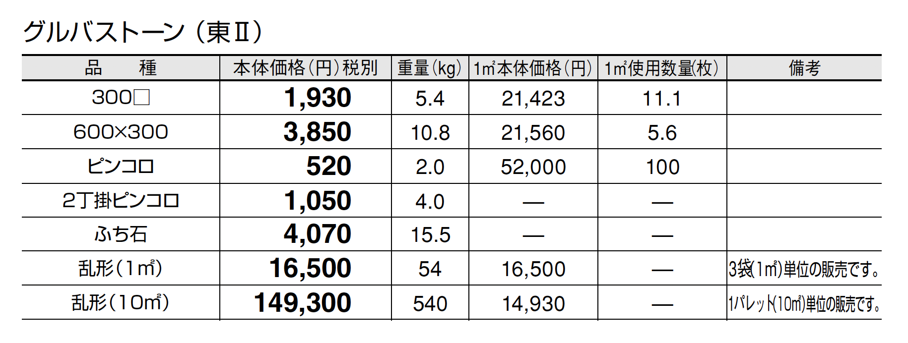 ●車輌乗り入れ部には適しませんのでご注意ください。 ●天然石の特性上、サビが入る場合があります。 ●天然石のため、寸法には幅があります。特に側面の意匠が割肌の商品は、割面の突起に大きなバラつきが出る場合があります。 施工前に仮置きをしていただき、 寸法誤差は目地モルタルで調整してください。 ●天然石のため、色幅があります。また、色幅が偏る場合もあります。 ●ピンコロは、台形の形状に割れる性質があります。平滑な面を使用面に利用してください。 ●輸入品のため欠品になる場合がありますので、納期をご確認ください。 ●モルタルが表面に付着しないようマスキングするか、もしくは速やかにふき取り汚れを防いでください。 ●表面が平らではないため、雨水が溜まることがあります。 ●酸に弱いので酸洗いは避けてください。
