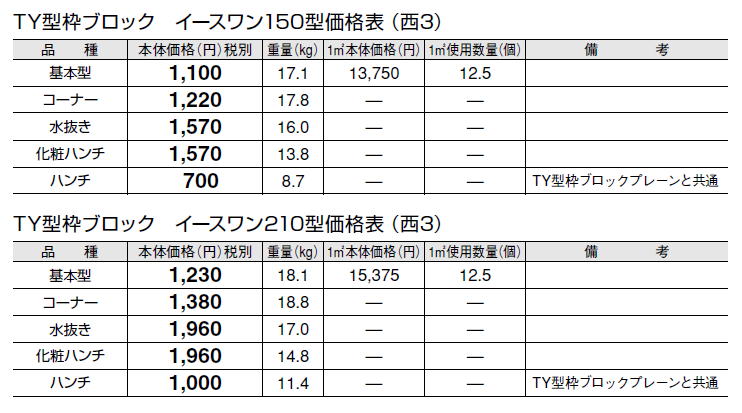 | 新旧品 | TY型枠ブロック イース ワン【九州・西中国】(エクステリア総合カタログ2025) |