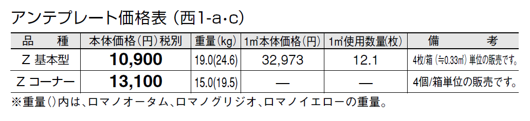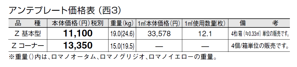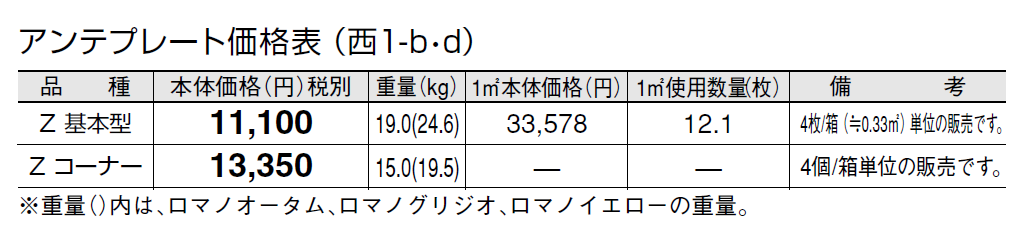 | カラー | ロマノオータムZ ロマノグリジオZ ロマノイエローZ ロマノベージュZ ロマノブラックZ |