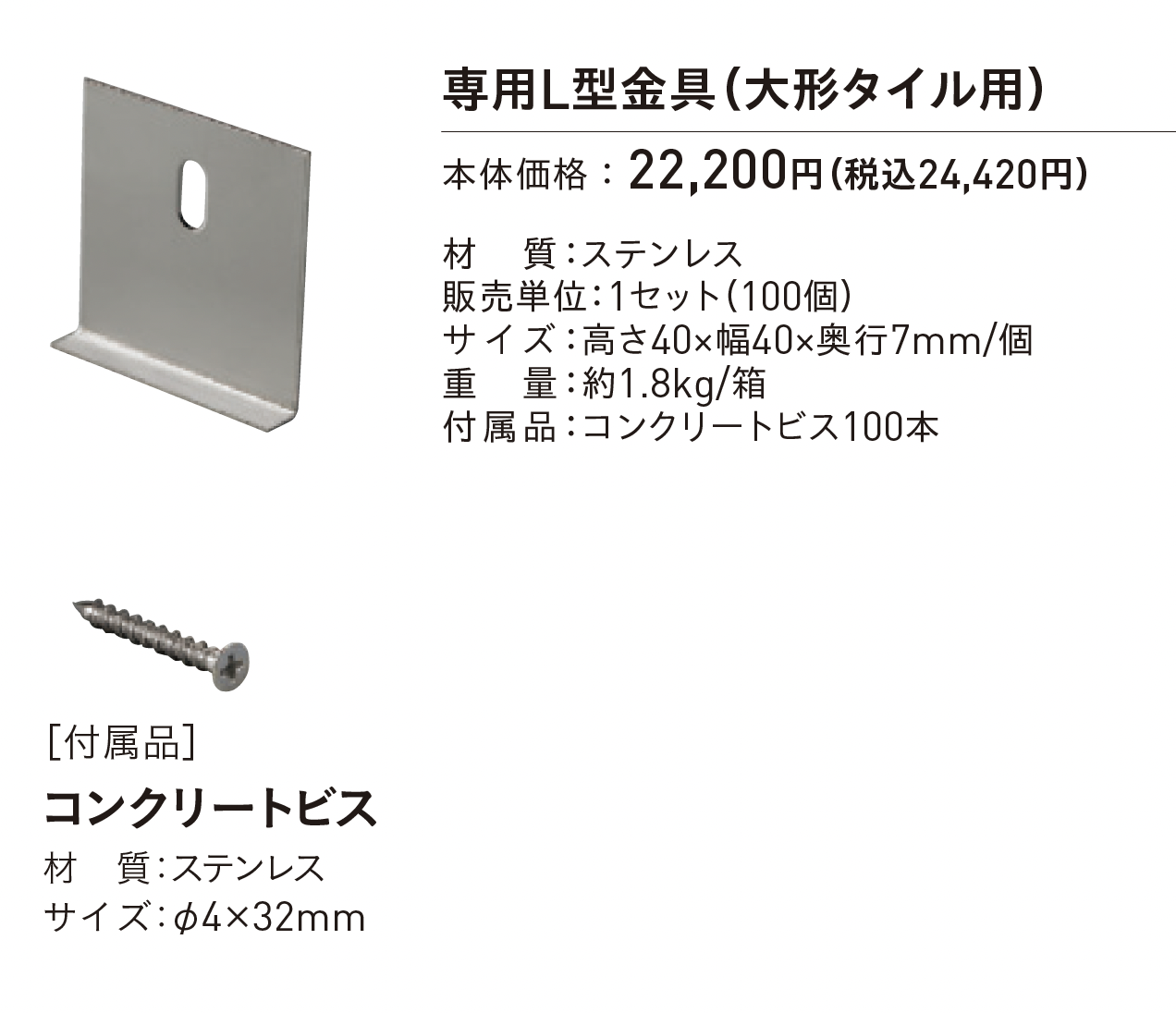専用L型金具(大形タイル用)【2025年版】(カーサ&エクステリア 商品総合カタログ2025)