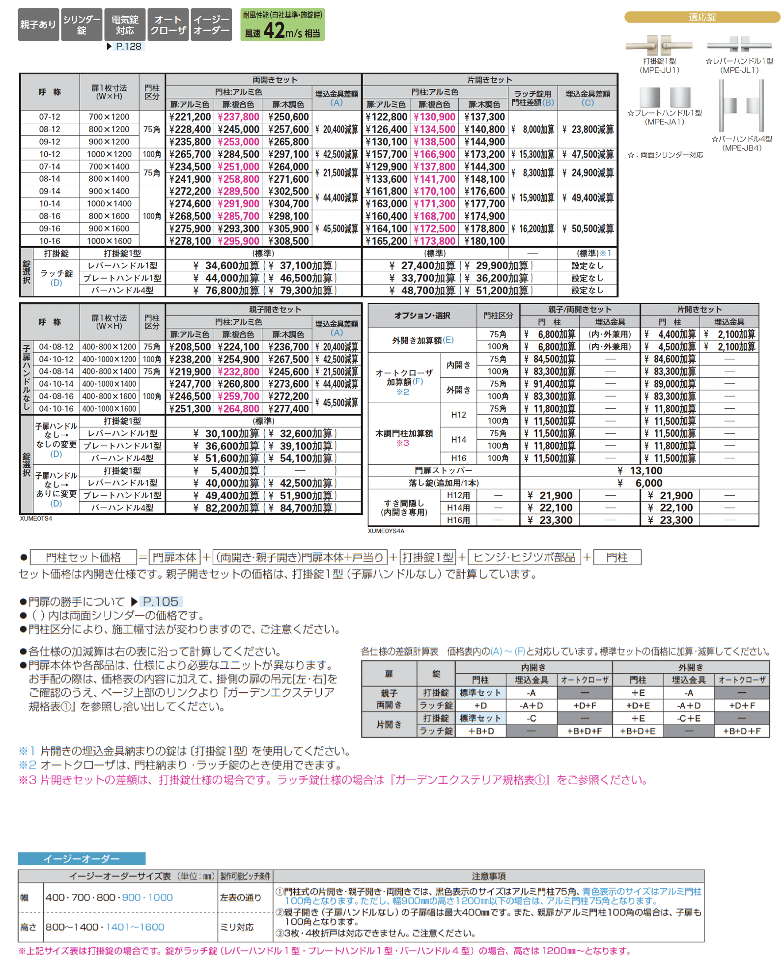 左右兼用/左右あり/親子あり/シリンダー錠/電気錠対応/クローザ対応/サイズオーダー可能
