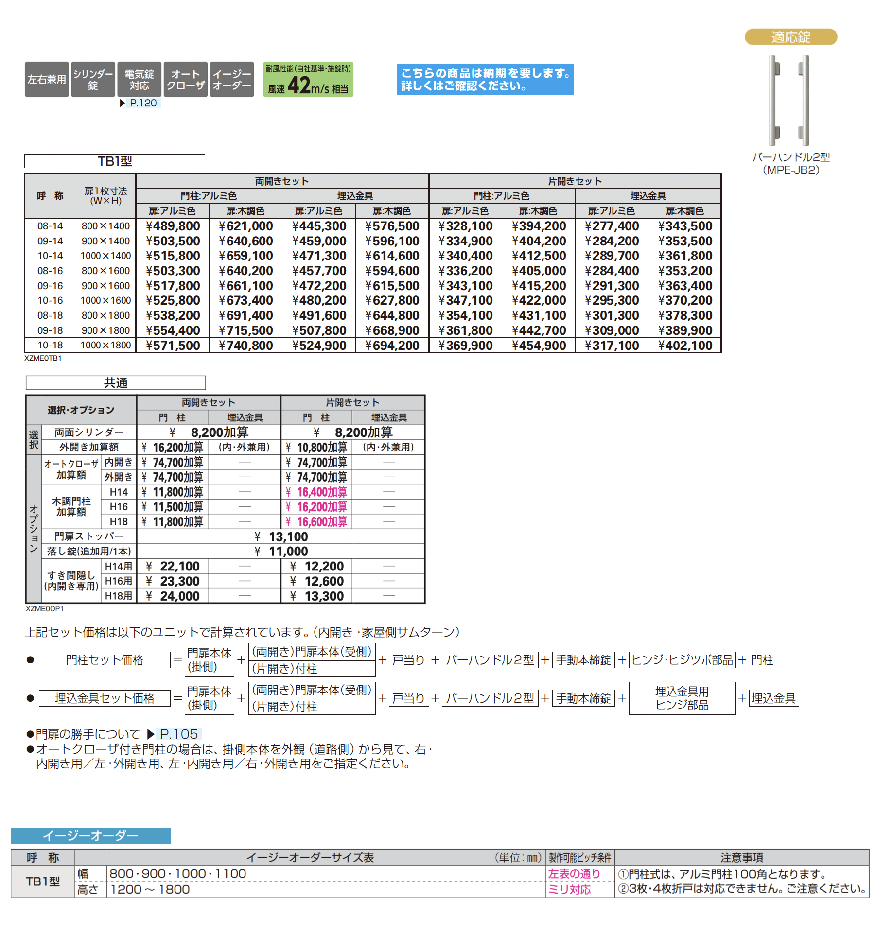 左右兼用/左右あり/シリンダー錠/電気錠対応/クローザ対応/サイズオーダー可能