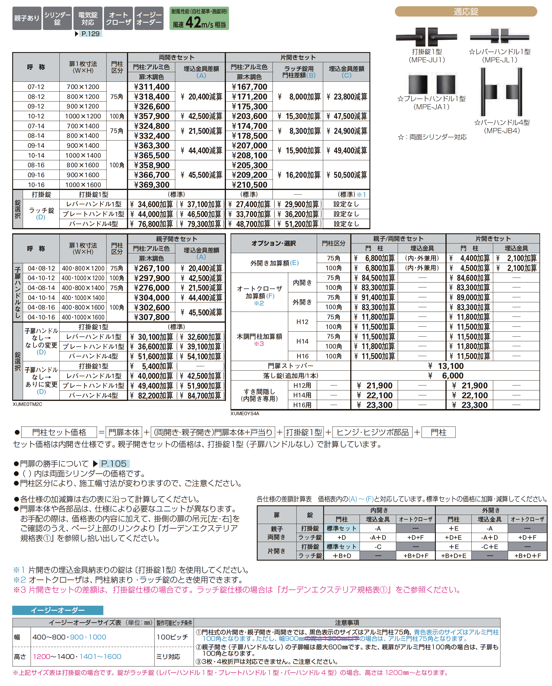 左右兼用/左右あり/親子あり/シリンダー錠/電気錠対応/クローザ対応/サイズオーダー可能