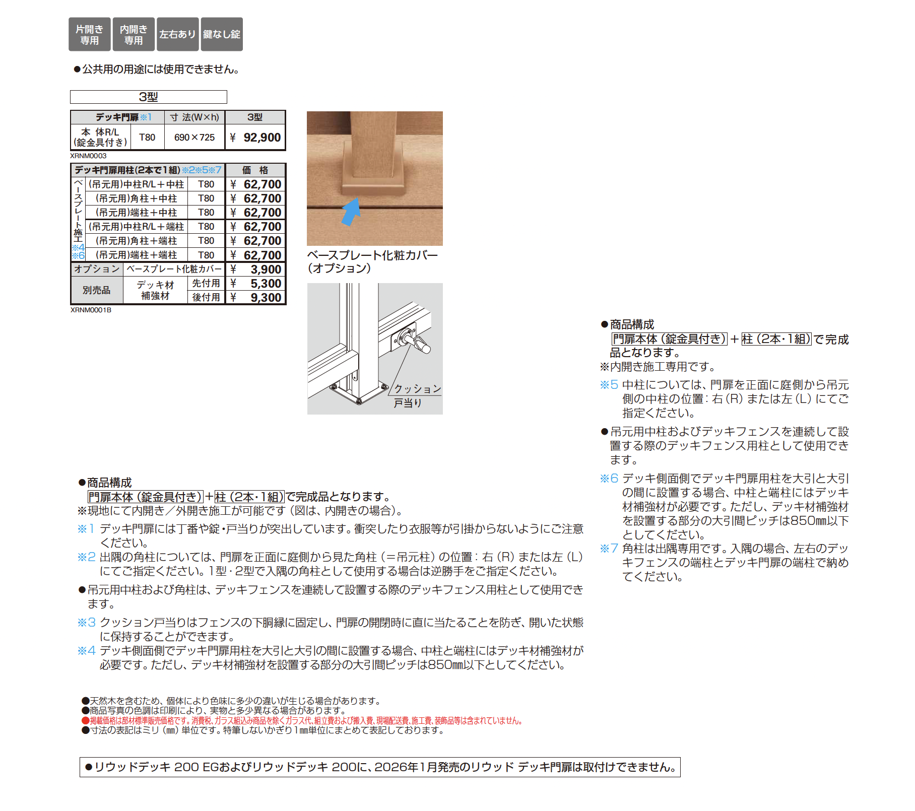片開き専用/内開き専用/左右あり/鍵なし錠