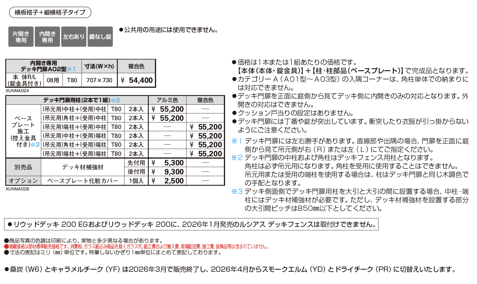 横板格子+細横格子タイプ/片開き専用/内開き専用/左右あり/鍵なし錠