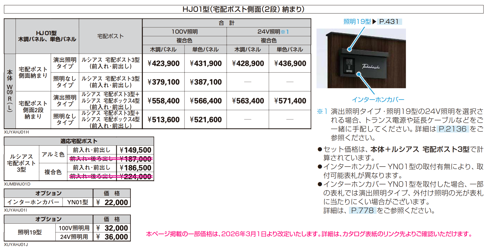 ルシアス ウォール HJ01型 宅配ポスト側面(2段)納まり_価格_1