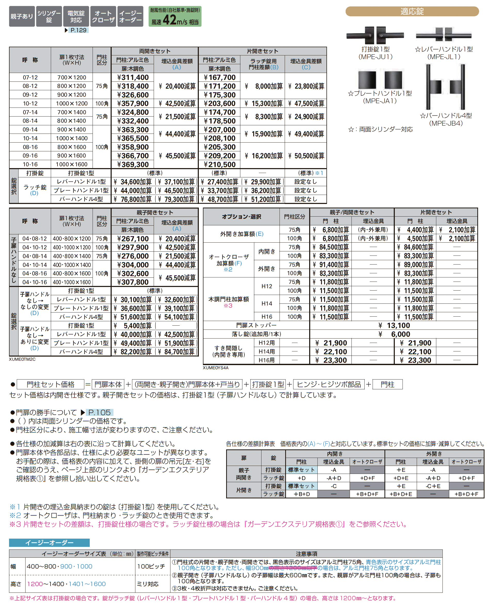 左右兼用/左右あり/親子あり/シリンダー錠/電気錠対応/クローザ対応/サイズオーダー可能